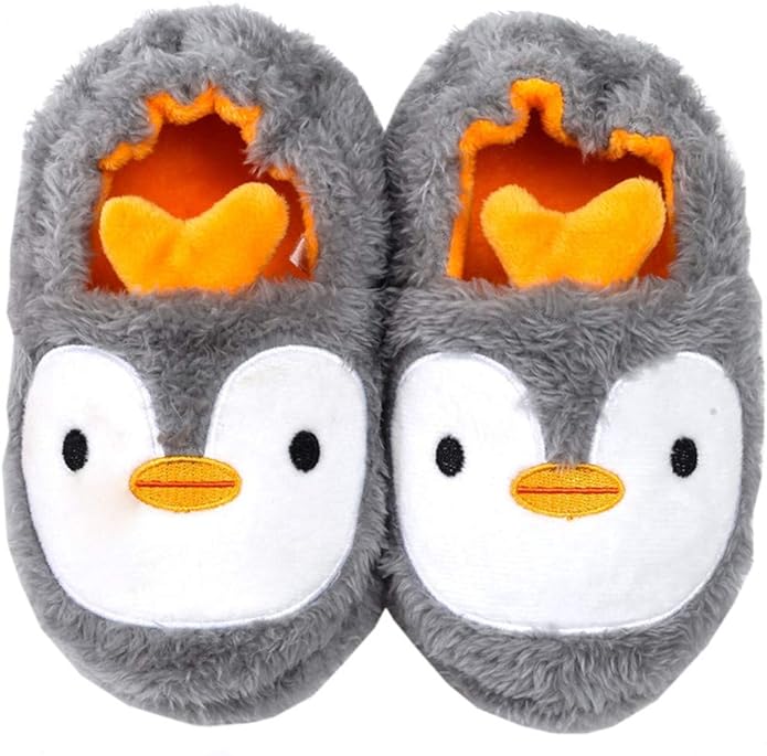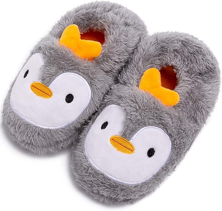 Kids Funny Soft Fuzzy Animal Slippers, Cute Cozy Non-Slip House Shoes for Boys & Girls, Shoe Size 1-4