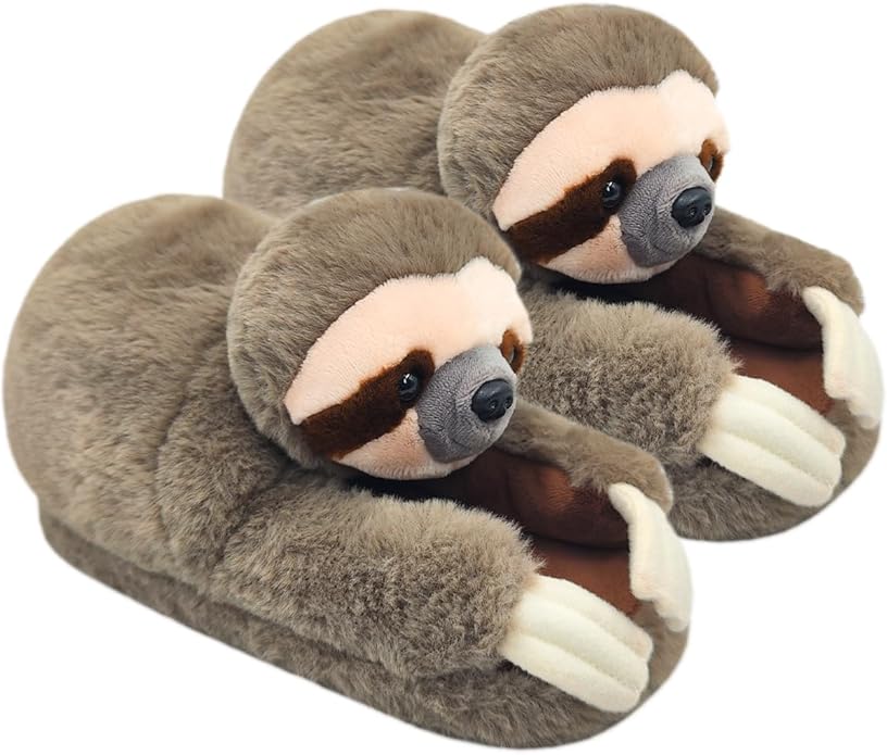 Cute Sloth Slippers for Girls Boys,Fluffy Animals House Slippers,One Size Slippers for Kids, Christmas Sloth Gifts for