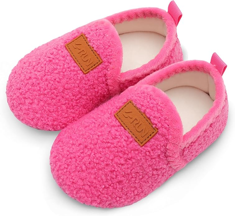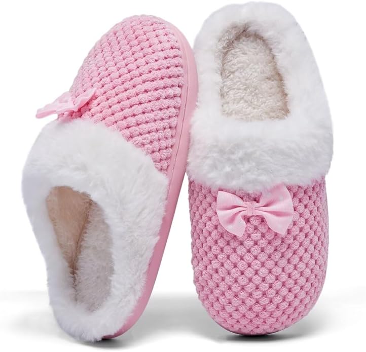 Kids Toddler Girls Slippers Memory Foam Comfort Wool-Like Plush Fleece Lined Winter House Shoes for Indoor