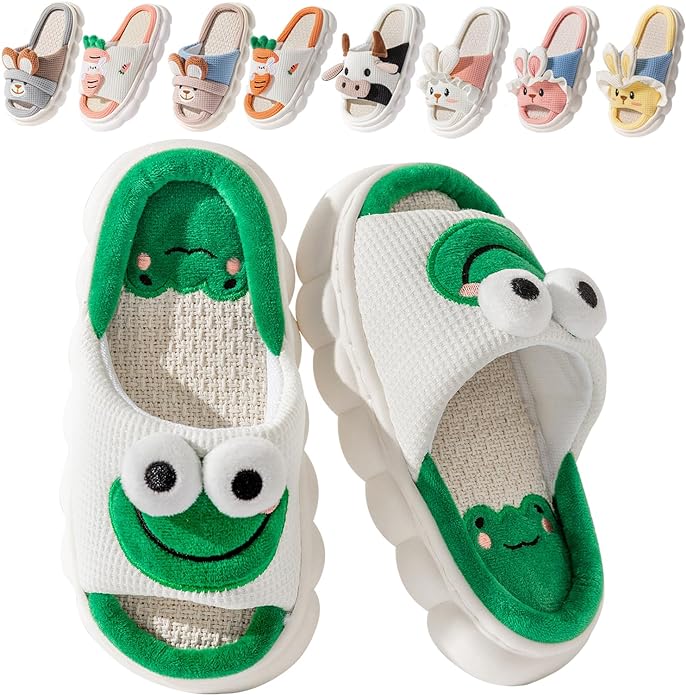 Girls Boys Cute Slides Slippers Kids Bunny/Cow/Frog Flip Flops Toddler House Thick Sole Indoor Slippers Soft Summers Slides for