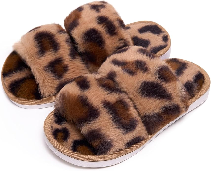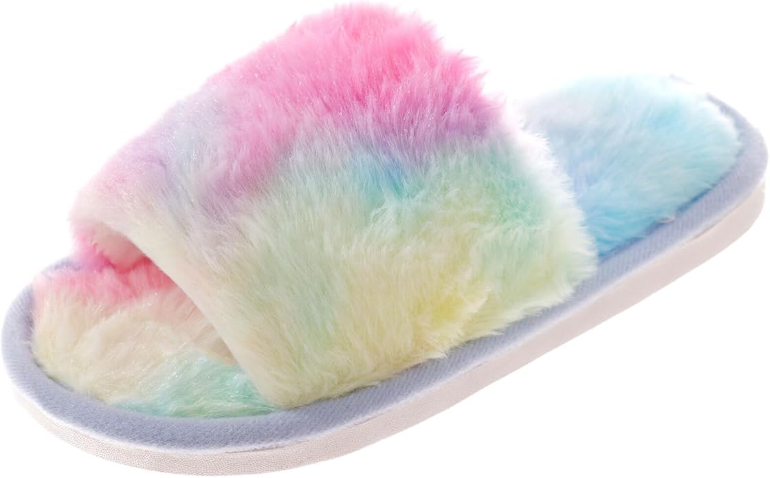 Fluffy Slippers for Kids Girls Furry Slides Open Toe Home Indoor Shoes