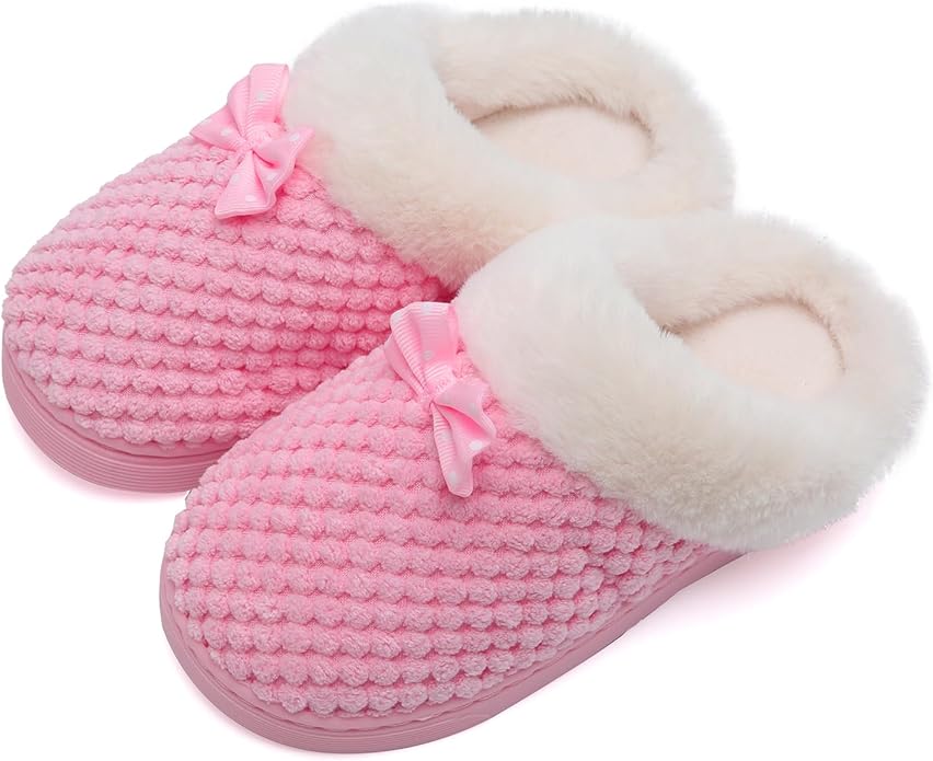 Girls Slippers Memory Foam Toddler Kids Comfort Wool-Like Plush Fleece Lined House Shoes for Indoor & Outdoor