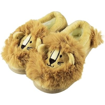 Kids Funny Soft Fuzzy Animal Slippers, Cute Cozy Non-Slip House Shoes for Boys & Girls, Shoe Size 1-4